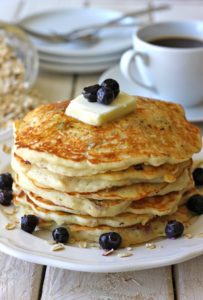 Blueberry Oatmeal Yogurt Pancakes