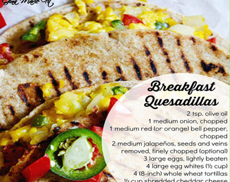 Author: Beachbody Serves: 4 servings, 1 quesadilla each Ingredients 2 tsp. olive oil 1 medium onion, chopped 1 medium red (or orange) bell pepper, chopped 2 medium jalapeños, seeds and veins removed, finely chopped…